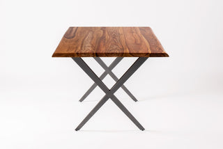 Take a seat at your new solid wood table, knowing you're creating a one of a kind dining experience. Our table tops feature planks of solid Rosewood containing unique grain patterns that are all completely different, so you can be sure no one will have a table exactly like yours. Built to last a lifetime, your solid wood table is handcrafted in India from sustainably grown & harvested Rosewood. Our customizing program allows you to choose the colour, edge finish, legs and size so you can impress friends and family with your sense of style!